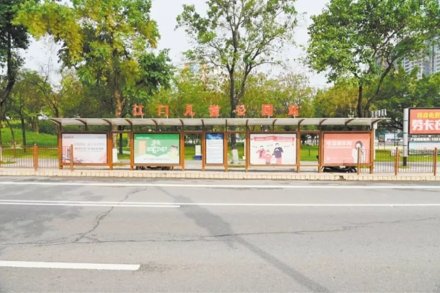 候車亭大變樣了,原來的站名“釜山公園站”變更為“江門兒童公園站”。